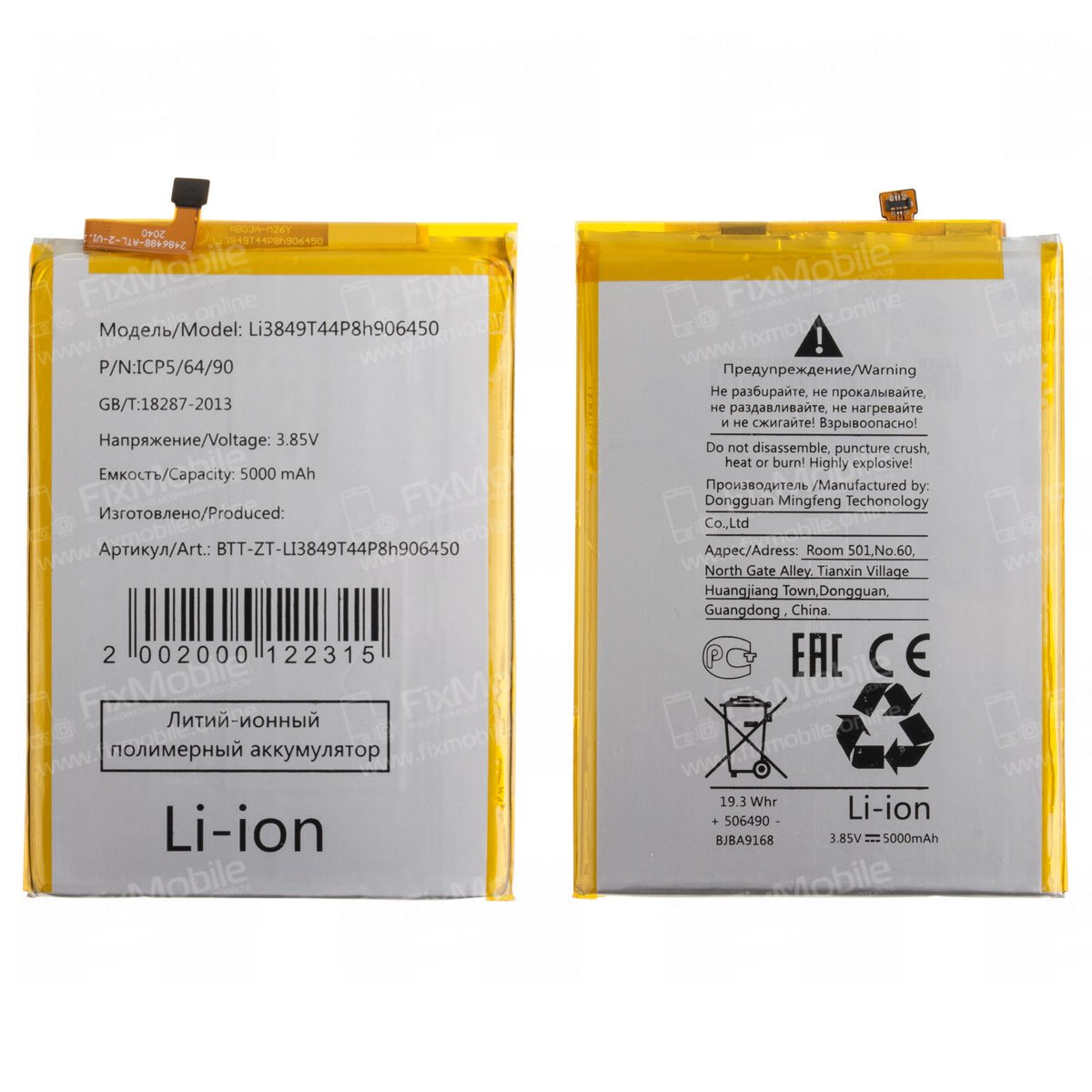 Аккумуляторная батарея для ZTE Blade A6 Li3849T44P8h906450